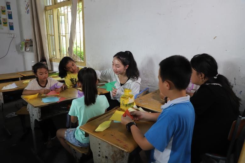 在课堂上,支教成员们分为三组,运用语言解说和动作演示,向孩子们进行细致的讲解,并手把手指导每个孩子完成折纸作品。在教学过程中,支教成员还和孩子们唠家常、了解当地的风土人情。支教组成员表示:“教学现场的氛围非常和谐,师生之间的关系也很融洽。孩子们积极配合我们的教学,有不懂的也会主动向我们提问。”