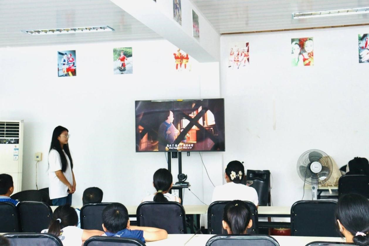 队员们利用自身优势和专业知识,结合乡村实际,设计了此次特色推普课程。课程内容涵盖了普通话的定义,说好普通话的意义以及基础发音、常用语句的学习训练。在此基础上,队员带领学生们观看了《仓颉造字》《游子吟》等有教育意义的视频,这不仅激发了学生们对普通话的兴趣,还坚定了他们讲好普通话的决心。