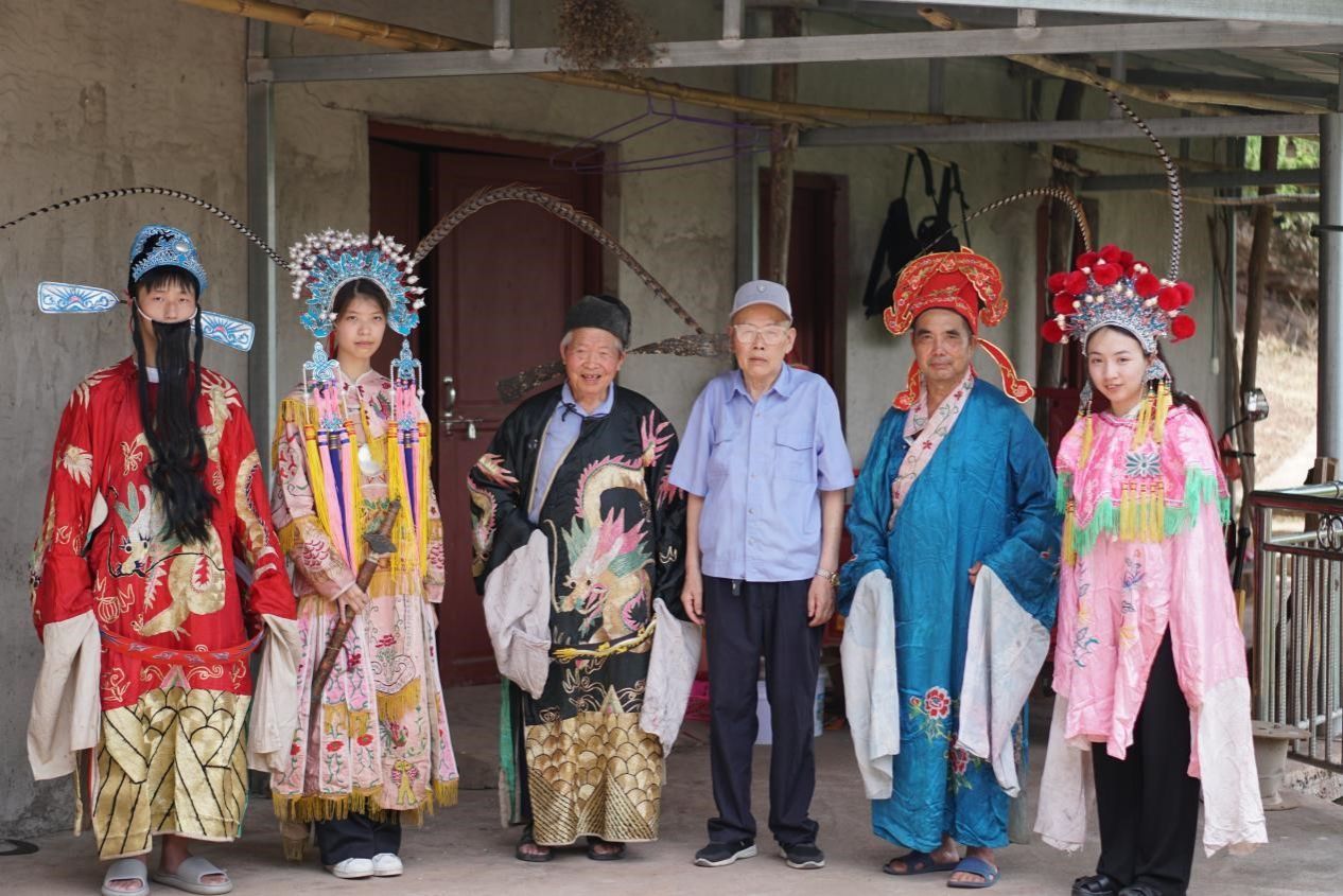 实践团成员与辰河高腔传承人和高腔剧团前团长合影留念