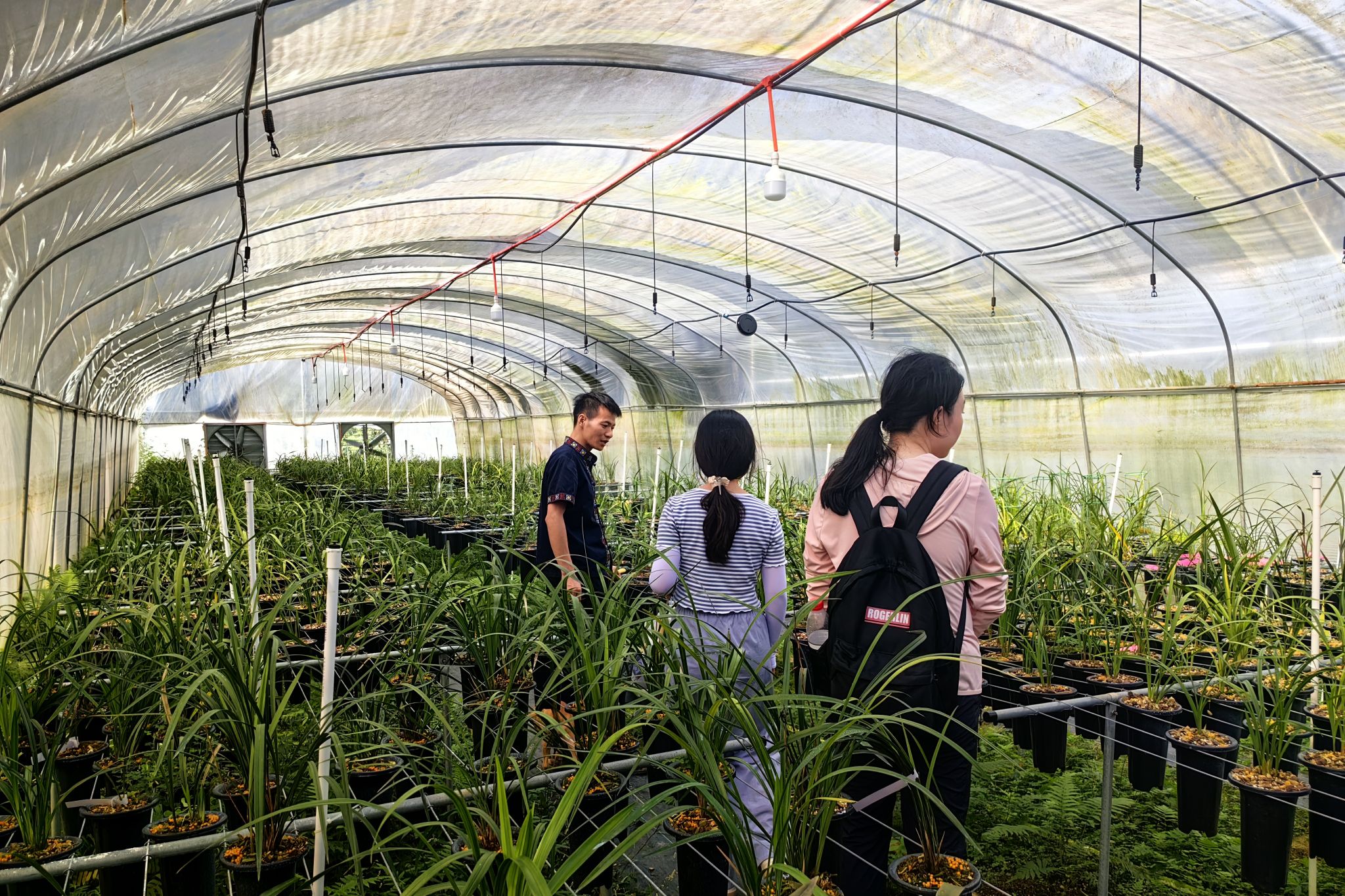 (蒋上京向实践团成员介绍兰花品种)