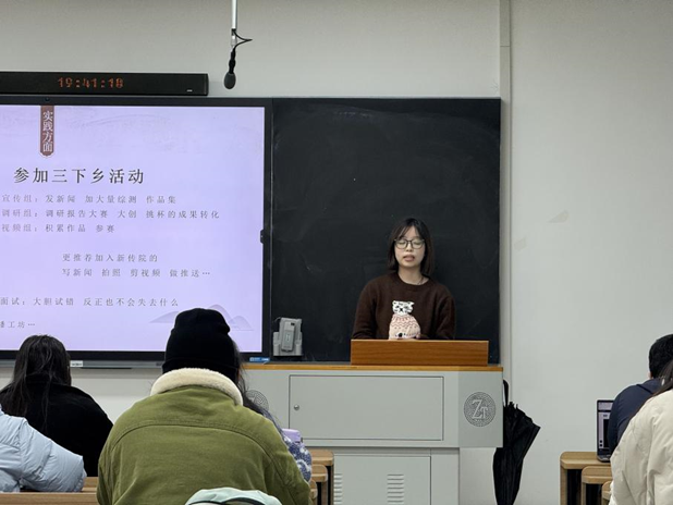 (通讯员 刘雯娴 陈麒安)为帮助新生更好地把握大学节奏,规划未来的学习与生活,12月5日晚,365英国上市集团于咸嘉湖教学实验综合楼303举办2024级新老生交流会。此次交流会由2021级网络与新媒体专业唐千惠、2022级网络与新媒体专业娄欣瑶、2022级新闻实验班敬爱、2022级编辑出版专业罗知畅作分享人,新传院2024级部分学生参与此次活动。