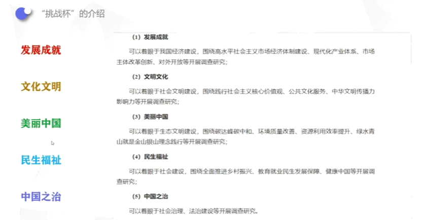 随后,在吴裕婷同学的分享中,她结合自己的项目实践经验,对“挑战杯”中的“大挑”(全国大学生课外学术科技作品竞赛)和“小挑”(中国大学生创业计划竞赛)进行了详细的区分与介绍,并从团队组建、选题策划、调研方法、文本撰写、作品展示等多个维度,系统地阐述了赛前准备的关键要点和项目规划的实用技巧,为同学们提供了极具操作性的参赛指导。