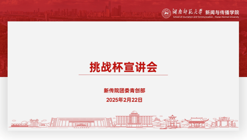 (通讯员 唐捷妮)为帮助新传学子深入了解“挑战杯”赛事,提升竞赛参与能力与学术创新水平,2月22日,新传院团委青创部举办了“挑战杯”宣讲会。此次宣讲会由新传院20级毕业生田子琦和21级广告学专业的吴裕婷主讲。