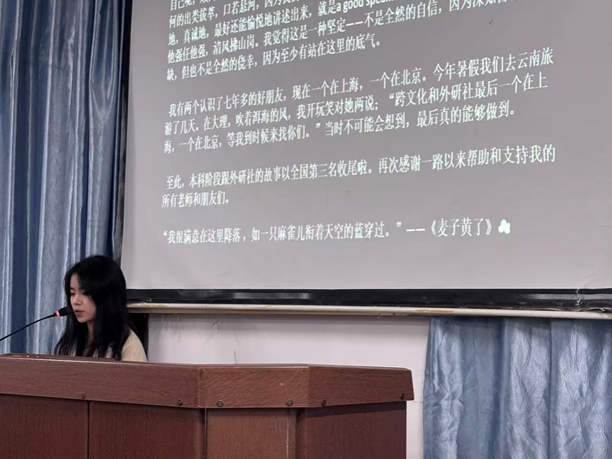廖茂邱结合自身参与两项英语国家级竞赛的宝贵经历与心路历程,深入剖析英语学习在国际传播中的重要意义。在国际传播的大舞台上,英语不仅仅是一门语言工具,更是连接不同文化、传递多元信息的桥梁。从日常的国际新闻报道,到跨国文化交流活动的策划与执行,扎实的英语能力是新传学子不可或缺的核心竞争力。