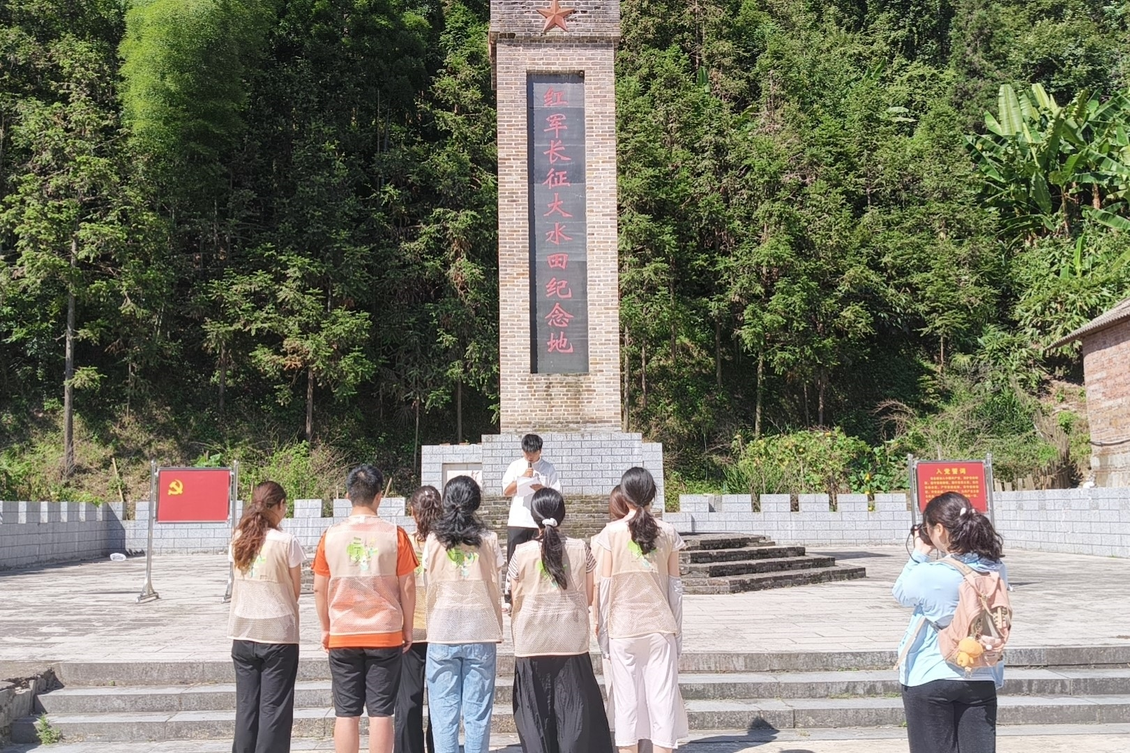 在村干部李洁的组织下,实践团成员身着红军服装,从大水田村长征纪念碑出发,依次经过红军桥、红军柳会场等历史遗址,实地感受革命先辈的奋斗历程。活动结束后,实践团前往大水田村人民公社旧址,通过陈列的实物与历史资料,进一步了解当地农耕文化与红色历史的融合发展。