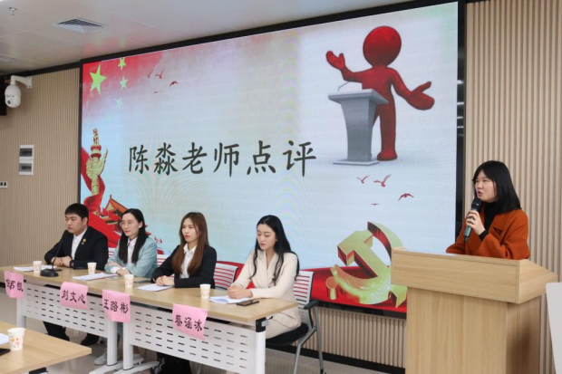 11月23日下午,我校第629期红色论坛在咸嘉湖校区综合教学实验楼402教室举行。我院广电系教师陈淼、学工办主任欧阳丹玲、院团委书记陈安琪出席活动。
