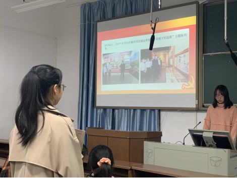 活动开始通过图文展示回顾习近平总书记在湖南的考察历程,引入爱国精神主题后共同观看红军长征精神影片,引发了全体成员强烈共鸣。同时,姚凤怡同学、陈倩同学还就入党向成员分享了自己的经验和展望。成员们针对青年大学生中如何担当成为实现中华民族伟大复兴的时代新人各抒己见。