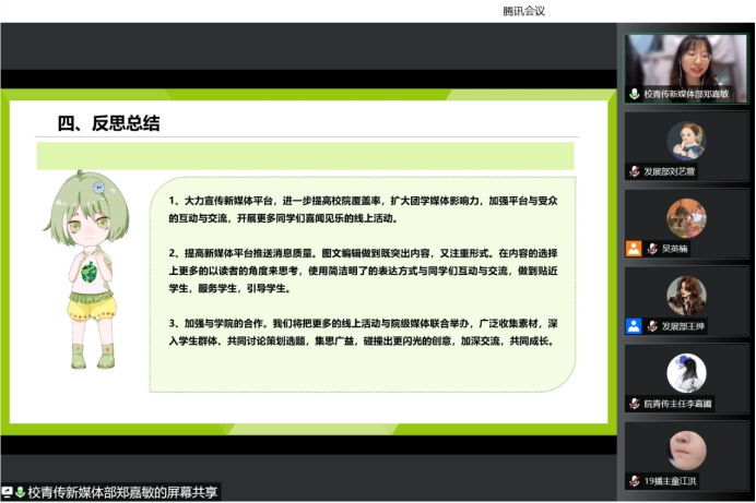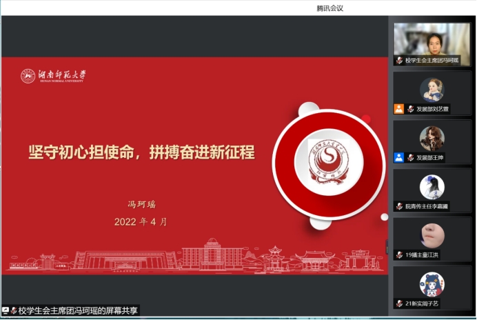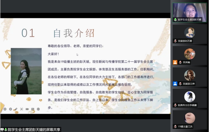 通讯员 吴英楠 王绅4月1日中午,我院举办线上2021-2022年度学生干部述职大会。党委副书记张小春,院团委书记陈安琪出席会议。