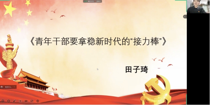 活动开始,冯珂瑶同学联系习近平总书记重要讲话精神从以理想信念为根基、提升青年干部综合素质、服务为心,奉献为行三个方面分享作为新时代青年人,作为学生干部的自身经历。随后,梁欣然同学与同学们分享了自己学习生活的心得体会,鼓励同学们发扬斗争精神保持工作热情、在常学常新中加强理论修养、在继承传统方法中创新思维,在学习、工作和生活中永葆不竭的活力和旺盛的战斗力。汪雨薇同学联系自己的干部经历谈到青年应该始终艰苦奋斗。党政干部在成长的过程中,必须经过多个台阶、多个岗位的历练。这种历练的过程,就是在战争中学习战争的过程,也是不断去除“骄”“娇”之气的过程,经挫折而不断奋起、历尽磨难而淬火成钢,戒骄戒躁,筑牢理想信念根基。田子琦同学谈到青年干部应该做好身边的每一件事,勤于思考、勤于雕琢,不断激发青年的内生力量,保持着“弄潮儿向涛头立,手把红旗旗不湿”的姿态,真正拿稳新时代的“接力棒”。