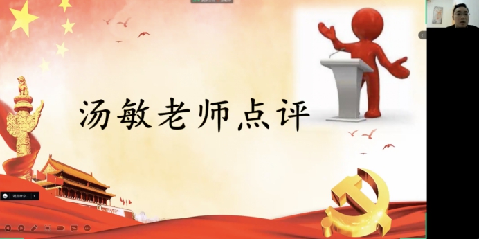 主讲人演讲完毕后,特邀嘉宾汤敏老师针对讲话进行了点评。他谈到要结合学生发展实际对同学们提出树立不负人民的家国情怀,追求高尚纯粹的思想境界,为党和人民事业拼搏奉献,在新时代新征程上留下无悔的奋斗足迹的要求。