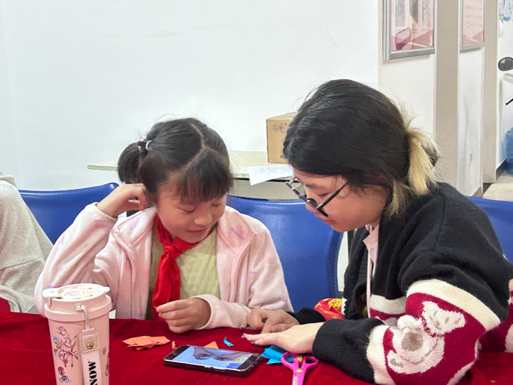 在此次活动中,我院充分利用自身学科背景,由“新传星梦”团队举办了清明习俗体验课。春风送花表哀思,手握彩笔寄深情。为了缅怀革命先烈,弘扬爱国主义精神,志愿者们给孩子们讲述了无数革命先烈为民族独立抛头颅、洒热血的英雄事迹,使孩子们深受鼓舞,并制作了手工鲜花,以表达对先烈先辈的哀思。我院“同音筑梦”团队还结合自身专业优势,将中国传统文化与志愿活动紧密结合,让廖家湾社区青少年了解清明节的传统习俗,追念先辈、感恩当下的同时,感受中华传统文化的魅力与内涵,使传承传统文化的种子在孩子们幼小的心灵里生根发芽。以潜移默化的方式将绿色祭祀的理念带入“寻常百姓家”,助力廖家湾社区文明健康的清明祭祀新风建设,实现了区校的合力共举。