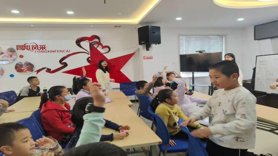 此次活动中我院社团成员、青年志愿者们与文艺新村的小朋友进行互动,课堂气氛热烈。孩子们积极参与,踊跃上台发言,挑战绕口令、进行名著名篇节选的普通话朗读。孩子们自信、开朗、向上的心态展示出中国新一代昂扬的精神面貌。