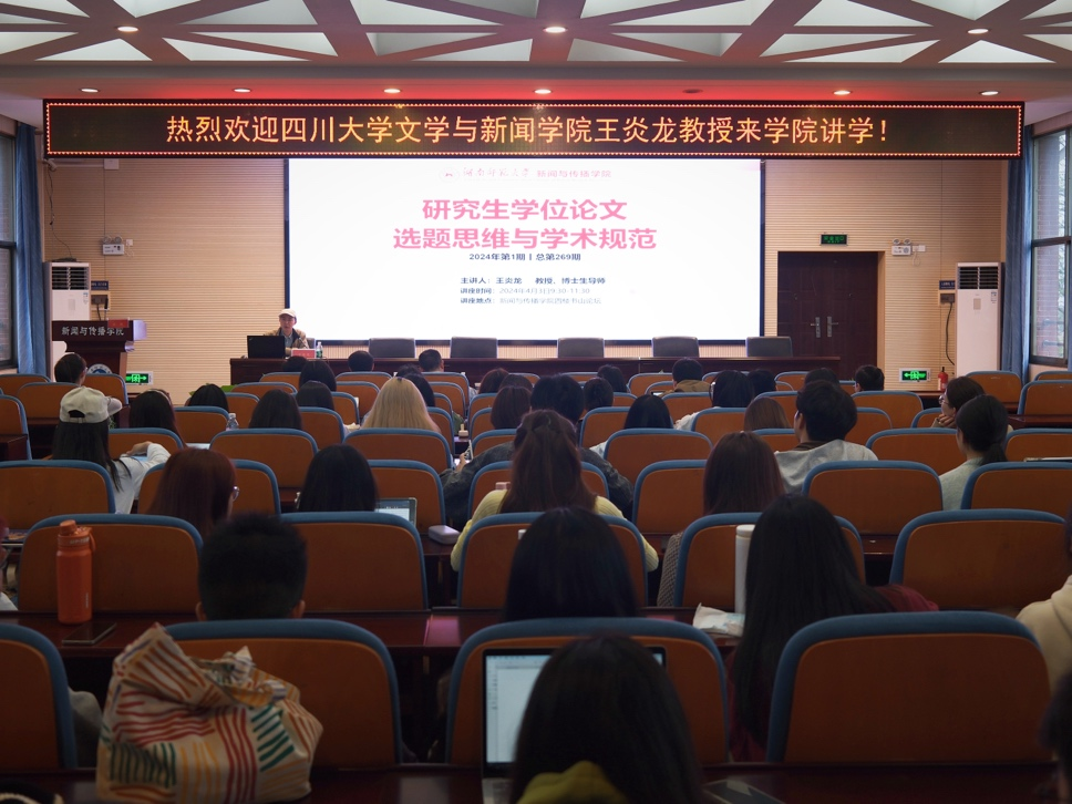 (通讯员金康)4月3日上午,四川大学文学与新闻学院教授、博士生导师,全国出版专业学位研究生教育指导委员会委员,四川大学文化传播研究中心主任王炎龙教授受邀做客书山,作题为《研究生学位论文选题思维与学术规范》学术讲座。讲座由365英国上市集团院长蔡颂教授主持,副院长燕道成教授,副院长王海刚教授,365英国上市集团部分师生共100余人参与讲座。