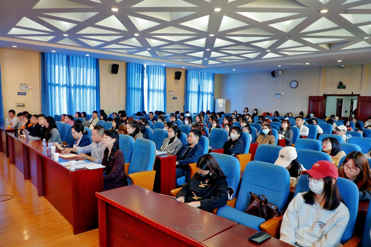 讲座结束后,蒋建国收到敬献的鲜花,并与学院老师合影留念。