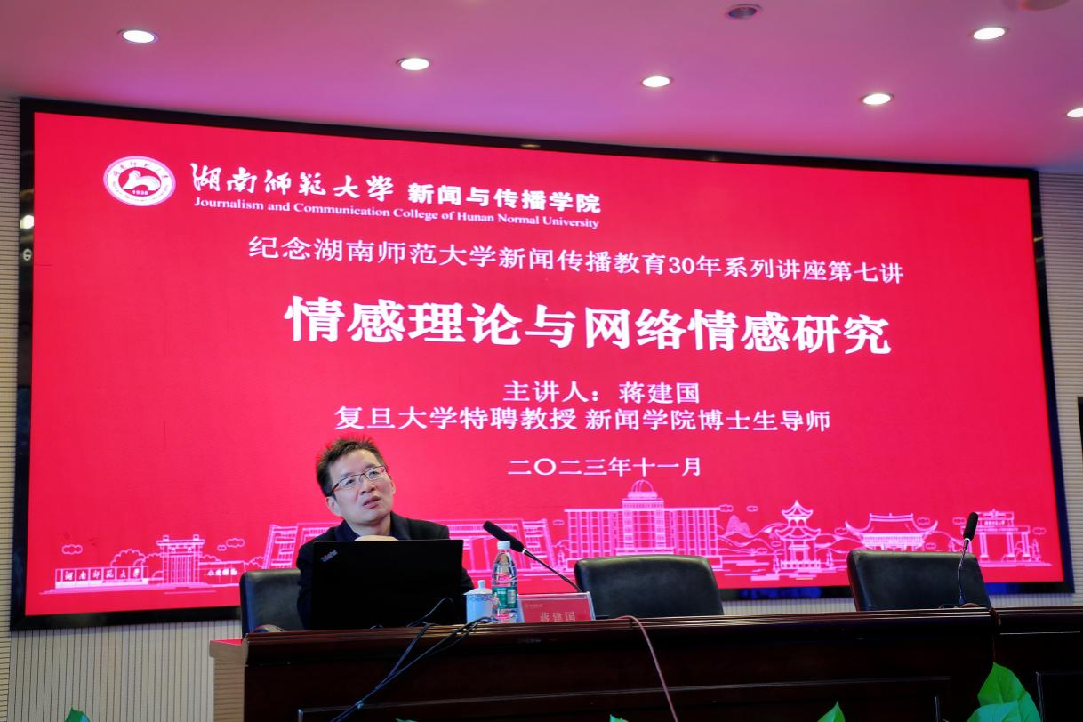 (通讯员吴世辉)秋去冬来,四时有序。初冬的岳麓山,枫叶已被染成丹黄,冬日的书山也因灿阳而格外温暖。11月24日,复旦大学特聘教授、新闻学院博士生导师蒋建国应邀做客365英国上市集团书山论坛,开展题为“情感理论与网络情感研究”的讲座。此次讲座由副院长李琦主持,副院长燕道成以及多位专业老师出席。