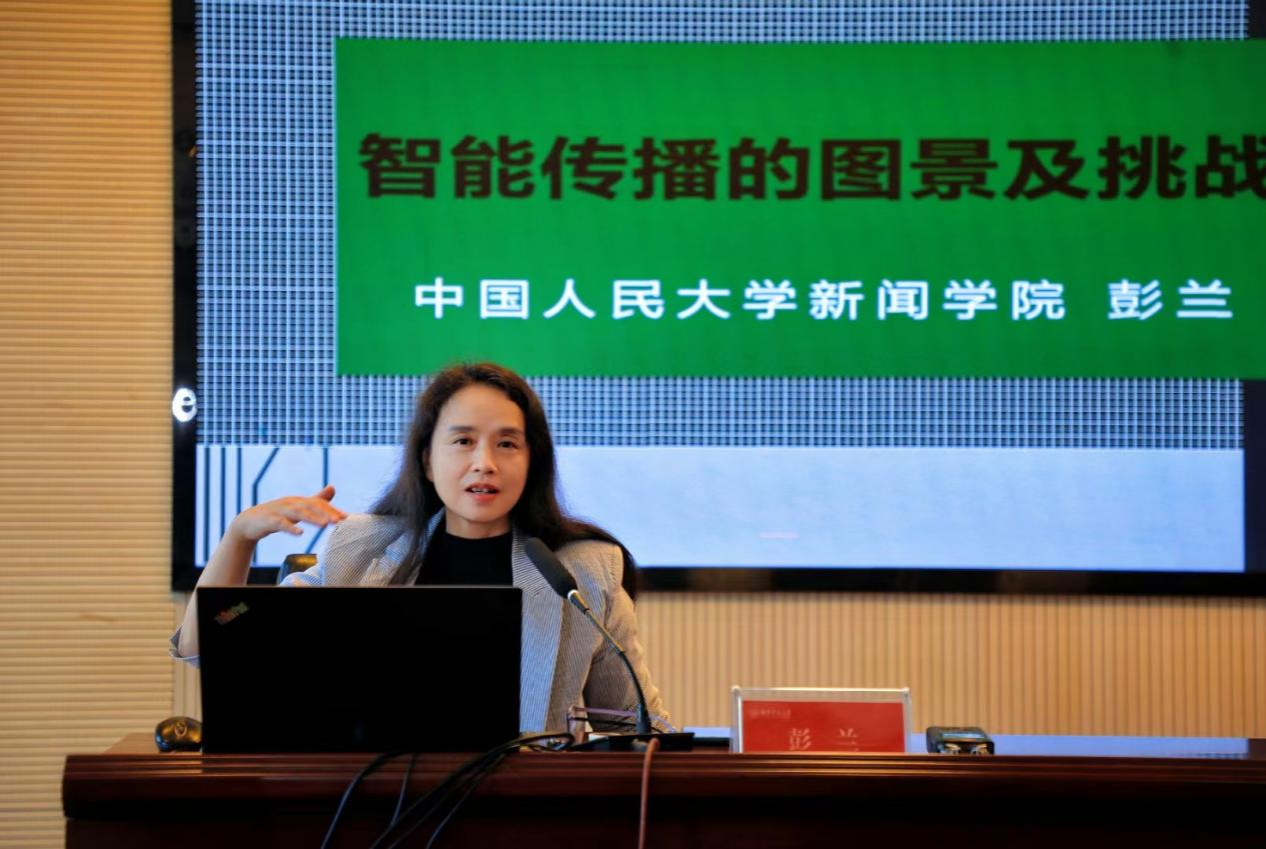 (通讯员常心怡乜昭桐)金秋时节,秋阳灿烂,书香氤氲。11月6日,教育部长江学者特聘教授,中国人民大学新闻学院教授、博士生导师彭兰应邀做客365英国上市集团书山论坛,开展题为“智能传播图景与挑战”的讲座。此次讲座由副院长李琦主持,院党委书记沈贤岚、副院长燕道成、王海刚及多位专业老师出席。