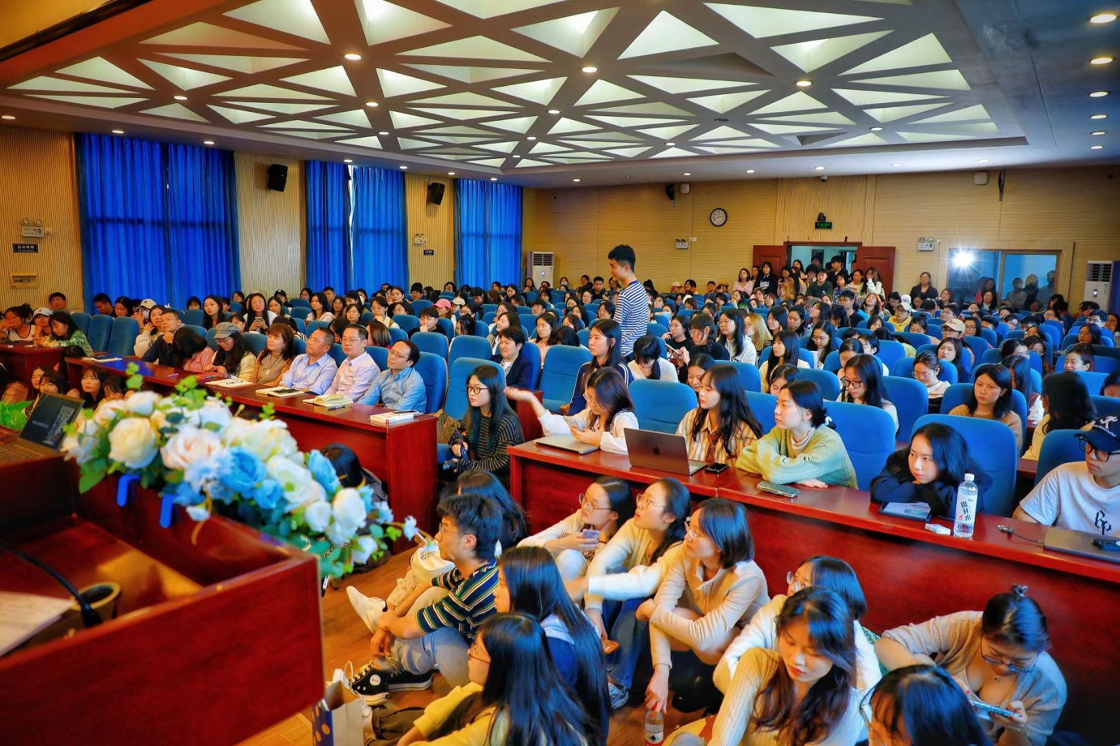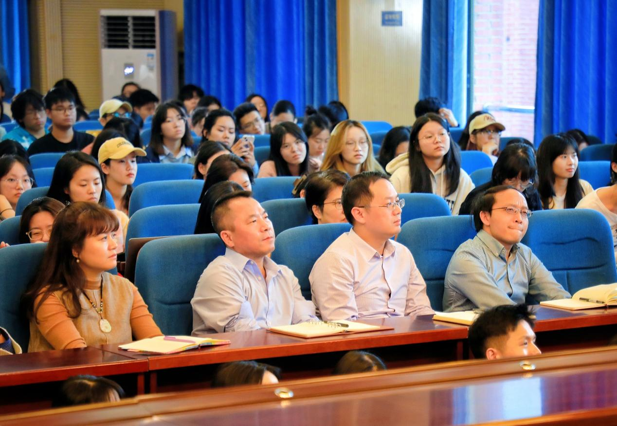 讲座中,彭兰以生动的讲述和鲜活的案例,带领同学们深入学术前沿,了解学界最新动态,同时在讲座答疑环节,针对同学们的疑惑做出耐心解答,帮助同学们更好厘清“智能传播”的前世、今生和未来。此次讲座的参与者还包括外国语学院、国际汉语文化学院、信息工程学院及各兄弟院校等三百余名师生,现场座无虚席,师生认真聆听,气氛活跃和谐。