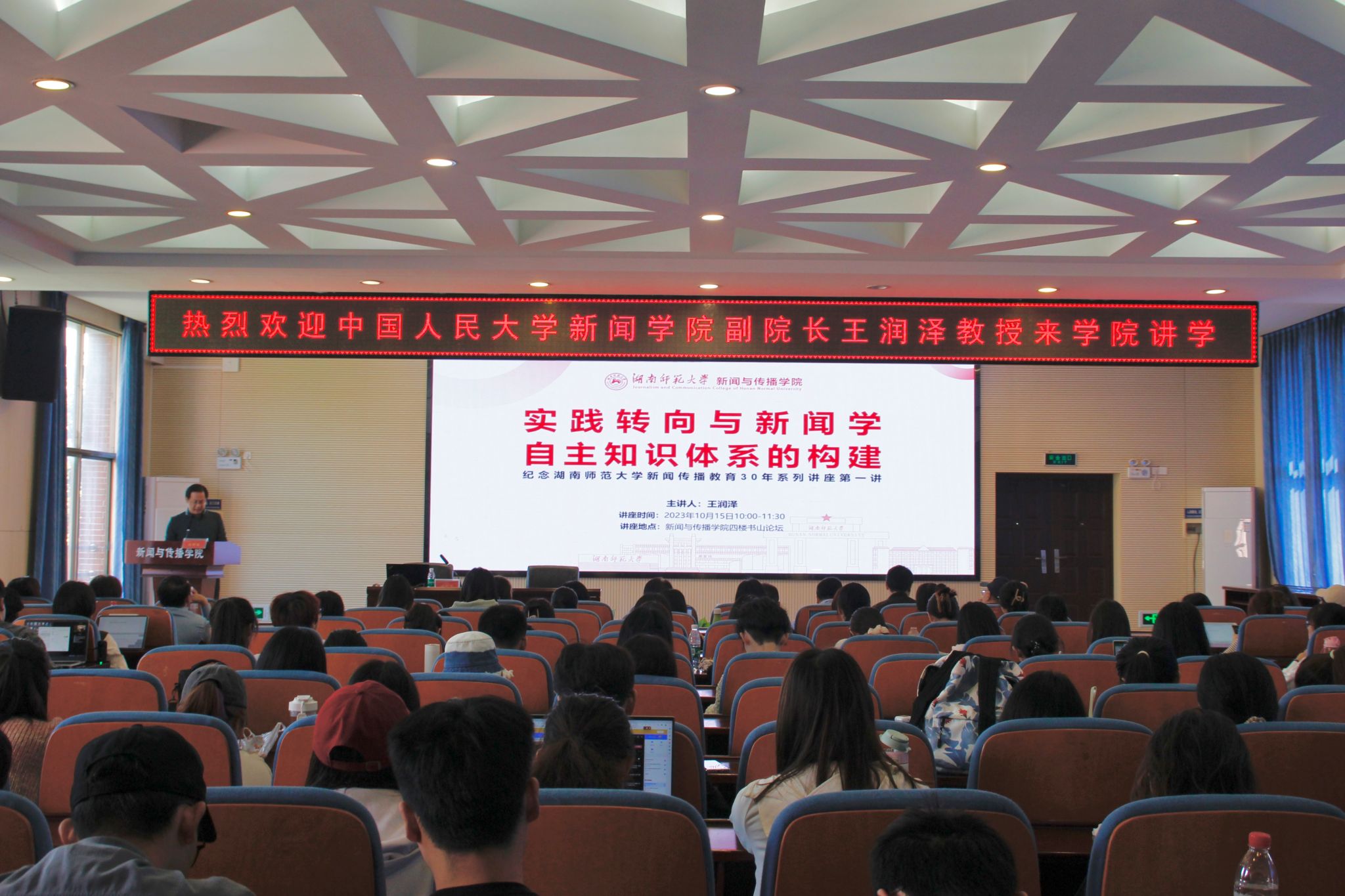 (通讯员 王倩)10月15日上午,中国新闻史学会会长、中国人民大学新闻学院副院长王润泽教授受邀做客书山,作题为《实践转向与新闻学自主知识体系的构建》学术讲座。讲座由365英国上市集团党委书记沈贤岚主持,副院长燕道成教授、副院长王海刚教授,新闻学系主任吴果中教授,播音与主持艺术系张丹丹教授,网络与新媒体系主任段峰峰副教授及部分青年教师参加讲座。