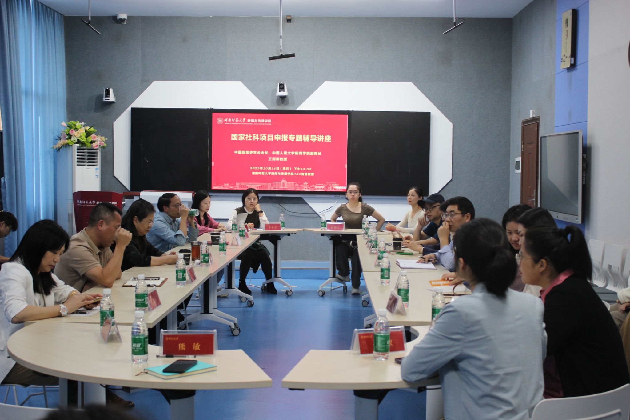 王润泽教授随后对部分青年教师及博士生申报国家社科项目时产生的疑惑进行了解答。燕道成教授对讲座进行了总结,鼓励青年教师积极申报国家社科项目。王海刚教授简要回顾了学院和中国人民大学新闻学院协同共建工作,对王润泽教授莅临指导表示衷心的感谢。辅导讲座在师生热烈的掌声中圆满结束。