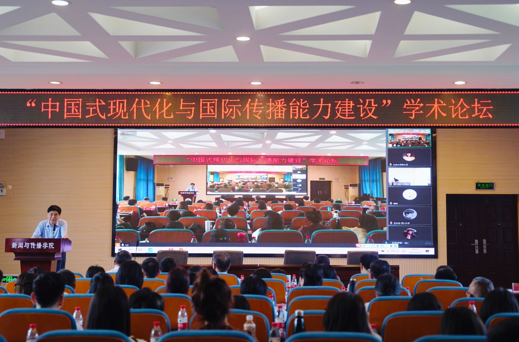 (记者 马铁泉 刘偲睿)5月27日,“中国式现代化与国际传播能力建设”学术研讨会在学院召开。为深入学习贯彻党的二十大精神和习近平总书记关于国际传播的重要论述,全面推进学习贯彻习近平新时代中国特色社会主义思想主题教育走深走实,学院与中国人民大学新闻学院联合举办了本次研讨会。研讨会以线上线下同步方式进行,吸引了来自来自全国高校、研究机构及媒体的近40位专家参会。