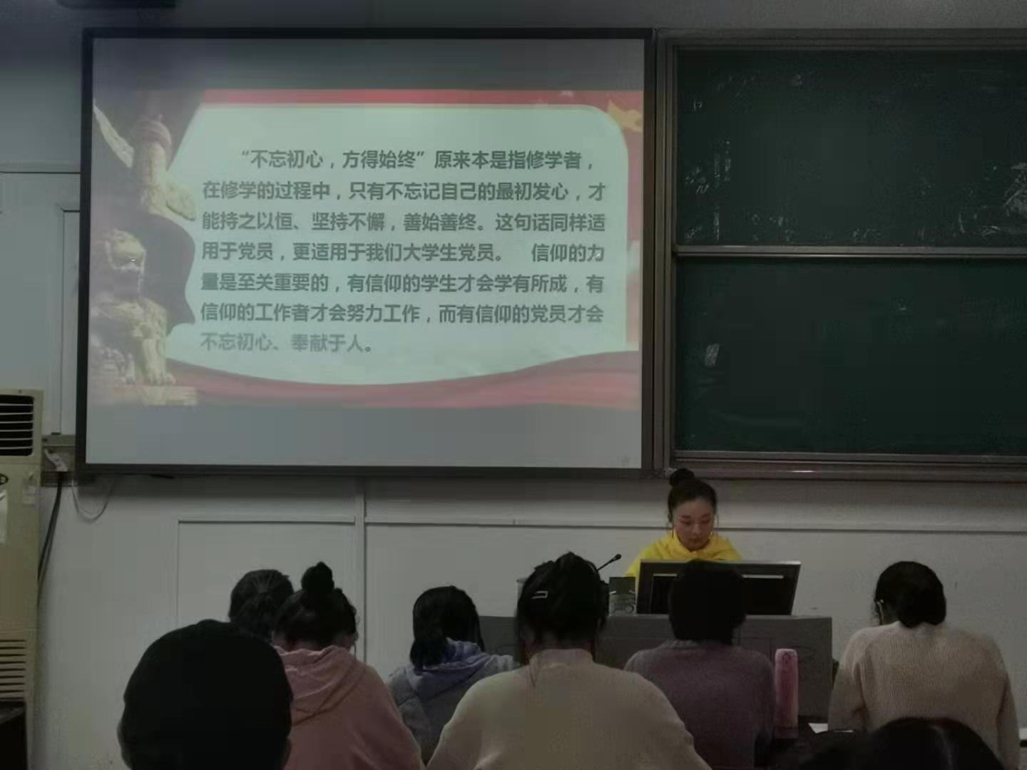 李艳书记从几个方面对同学提出了要求,一是做到真正从思想上入党;二是勤奋学习,与时俱进;三是在社会实践中培养自己;四是在党内生活中锻炼自己;最后要以高尚的道德要求自己。这几点的提出激发同学不断完善自己,追求完美,做一个无愧于社会,无愧于是人民的有共产主义党性和高尚道德素质的先进分子。