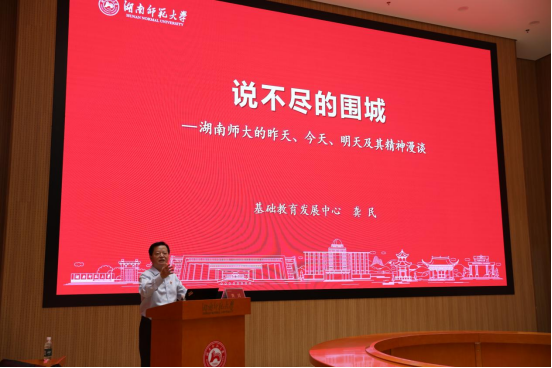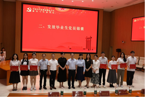 全体党员齐唱校歌。在庄严的氛围下,参会领导为毕业生党员发放党员锦囊,并为校友联络员颁发聘书。我校基础教育发展中心主任龚民为毕业生党员讲授了《说不尽的围城——湖南师大的昨天、今天、明天及其精神漫谈》的主题党课。他以“围城”为切入,深情回顾了师大的建校历史和重要时刻,讲述了学校建设发展的峥嵘岁月和深厚的文化底蕴。加深了毕业生党员对校史的了解,更好地领悟了“仁爱精勤”的校训精神,他表示,从新传院的“书山”旧址到师大图书馆,在此召开毕业生党员大会有着继往开来的非凡意义。