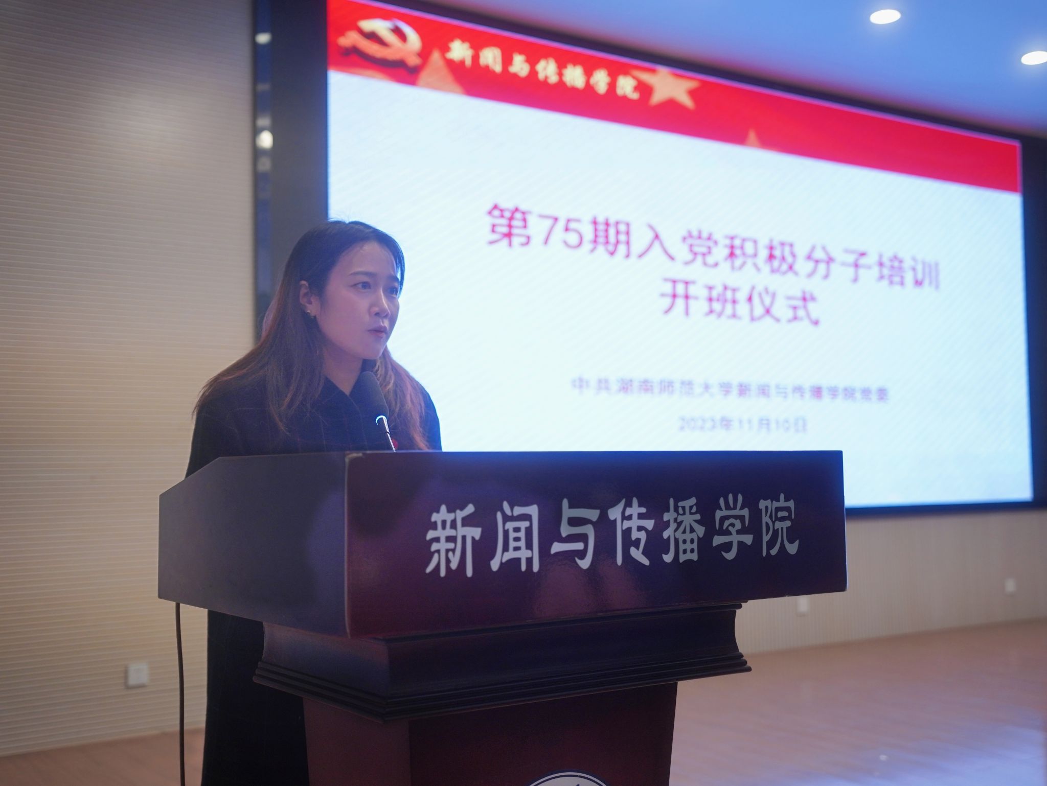 (通讯员 向思润 刘墨菡)为贯彻习近平新时代中国特色社会主义思想和党的二十大精神,帮助入党积极分子端正入党动机、确立为共产主义奋斗终身的信念,11月10日晚,我院第75期入党积极分子培训班在书山论坛举行开班仪式。学院专职组织员王云、党委副书记张小春、党委办主任丁畅出席此次开班仪式,第75期全体入党积极分子参加。仪式由院学工办主任欧阳丹玲主持。
